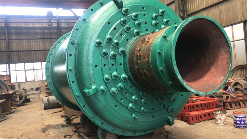 溢流型球磨機筒體用厚度15-36mm的鋼板焊接而成,在筒體的兩端焊有鑄鋼制造的法蘭盤,用螺栓將端蓋2和3與法蘭盤連接在一起,二者須精密加工和配合,因為承載磨礦機質量的中空軸頸焊在端蓋上。在筒體上開有1-2個人孔,供檢修和更換襯板用。筒體和端蓋內部敷設有襯板5。端蓋上的中空軸頸支承在主軸承4上。主軸承常用的是滑動軸承,其直徑很大,但長度很短。軸瓦用巴氏合金澆鑄,與一般滑動軸承不同之處在于僅僅下半部有軸瓦。整個軸承除軸瓦用巴氏金澆鑄外,其余用鑄鐵制成。由于球磨機的跨度和載荷很大,將發(fā)生一定程度的撓曲,而且制造和裝配的誤差也難以保證準確的同心度,因此主軸承制成自動調心滑動軸承,為防止軸瓦轉位過大而從軸承座中滑出,在軸承座與軸瓦的球面***放一圓柱銷釘。